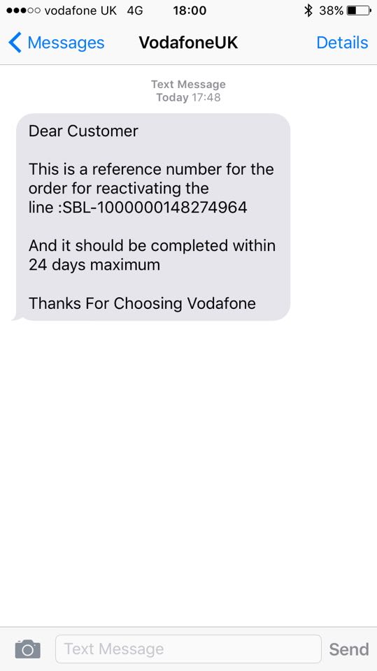 I called Vodafone ‘Customer Disservice’ yet again (see a pattern forming here) and this time was told that the phone number couldn’t be reactivated by them at all and every time he tried to submit the reactivation form it was coming up with an error and not allowing him to continue.