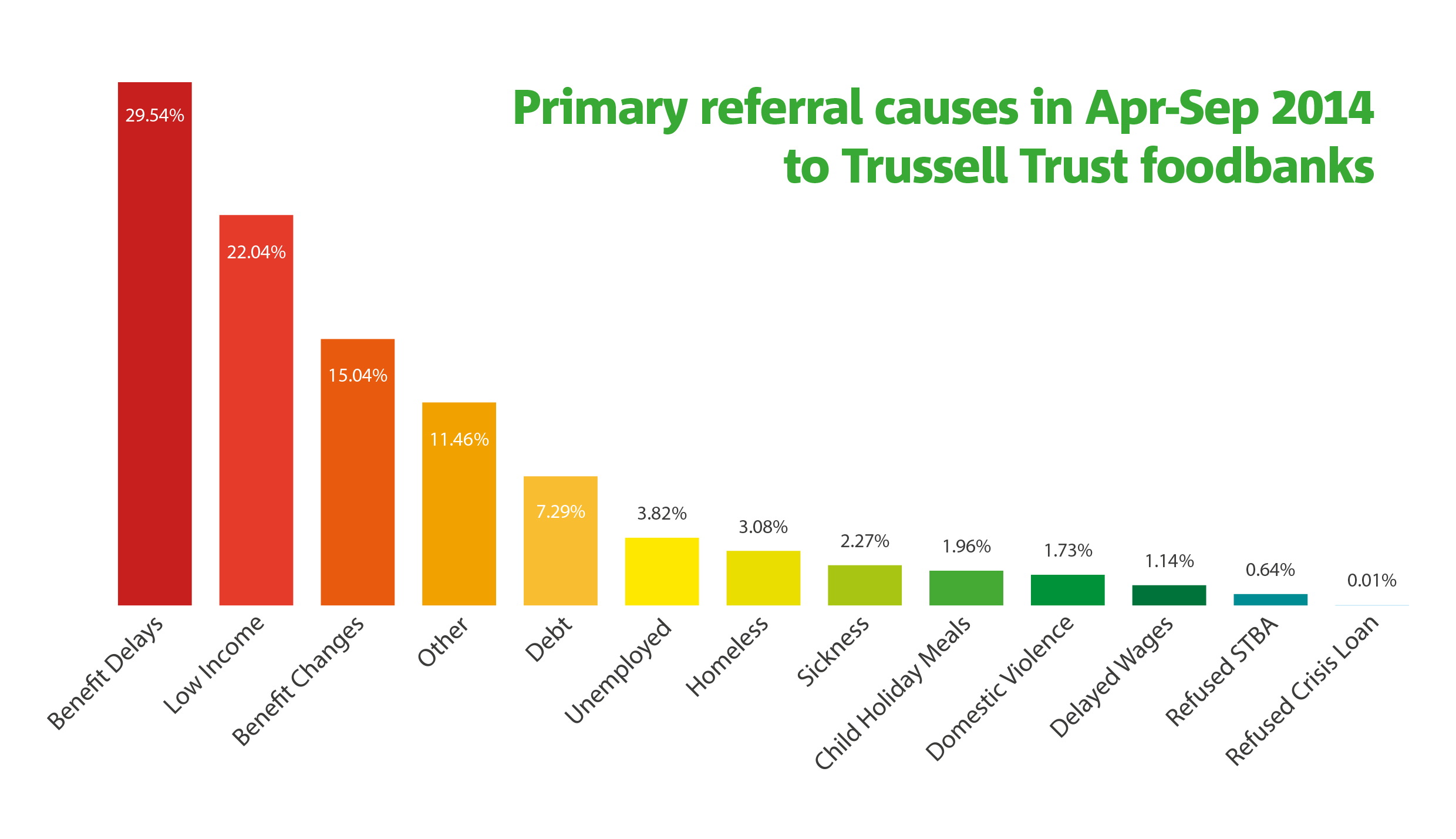 The study also shows that, contrary to public perception, the most common reason given for visiting a foodbank was benefit sanctions, followed by delays in benefit payments – it seems that this underlying issue is a major cause for concern and must be addressed as part of the food crisis debate.
